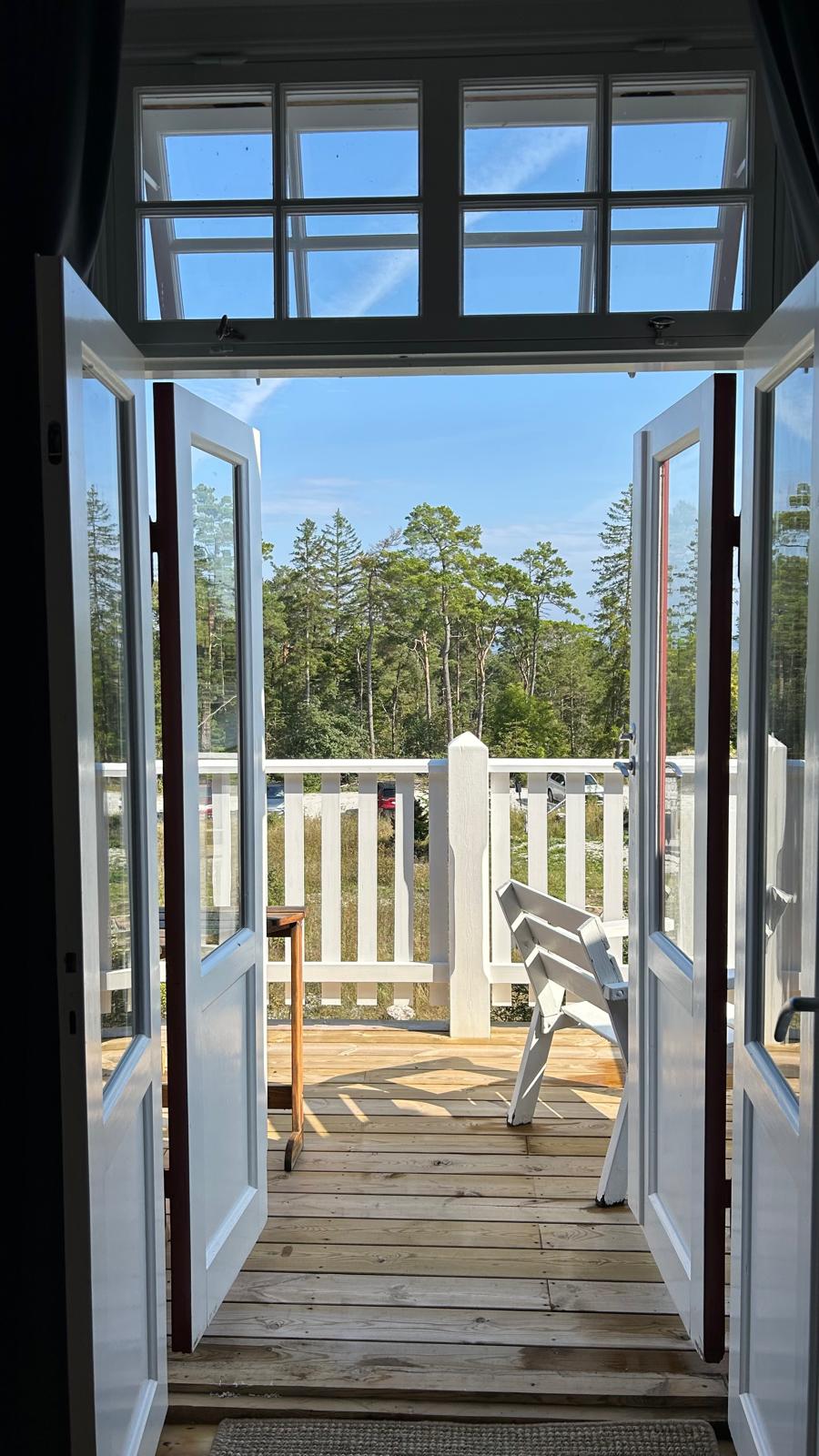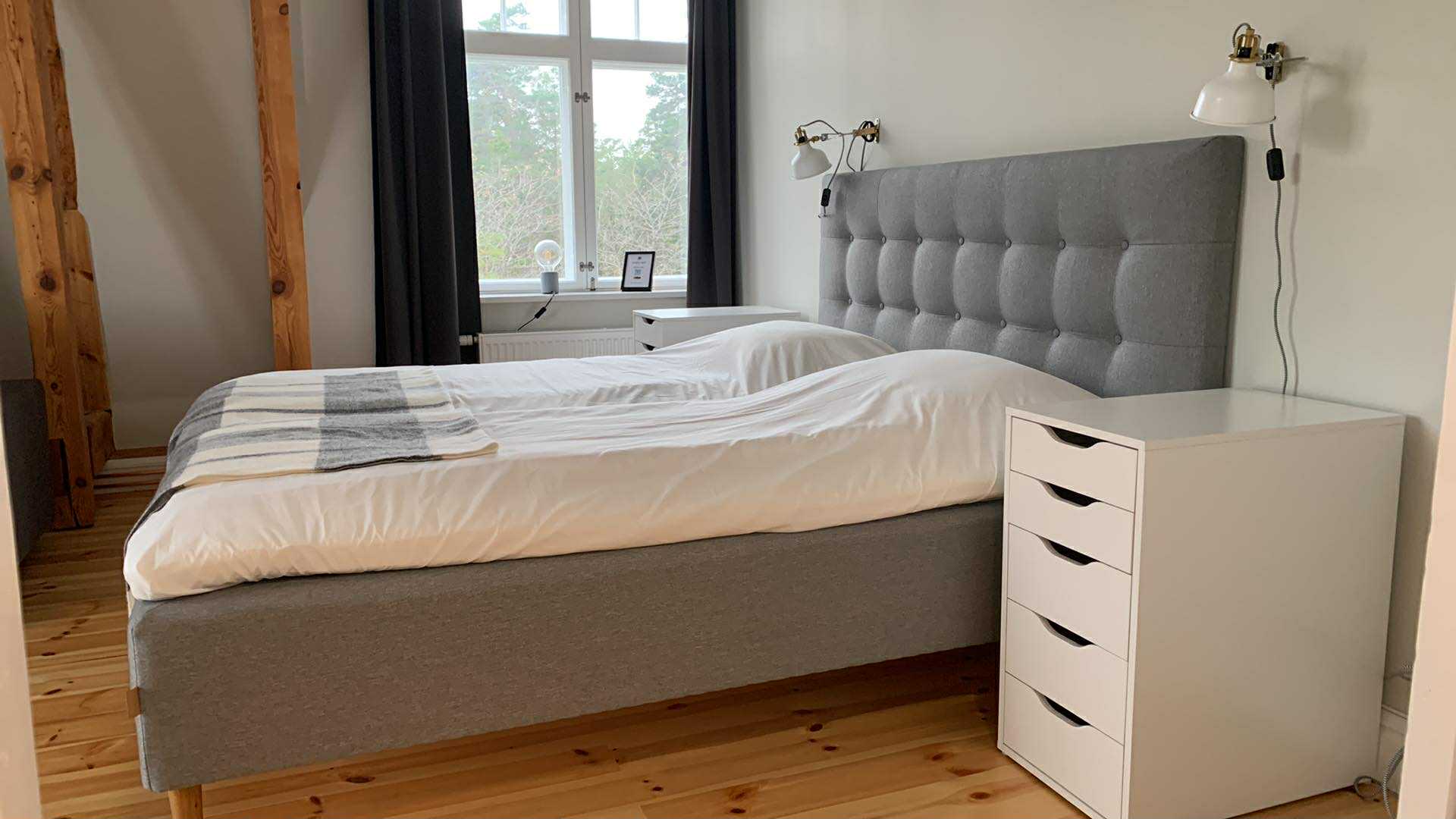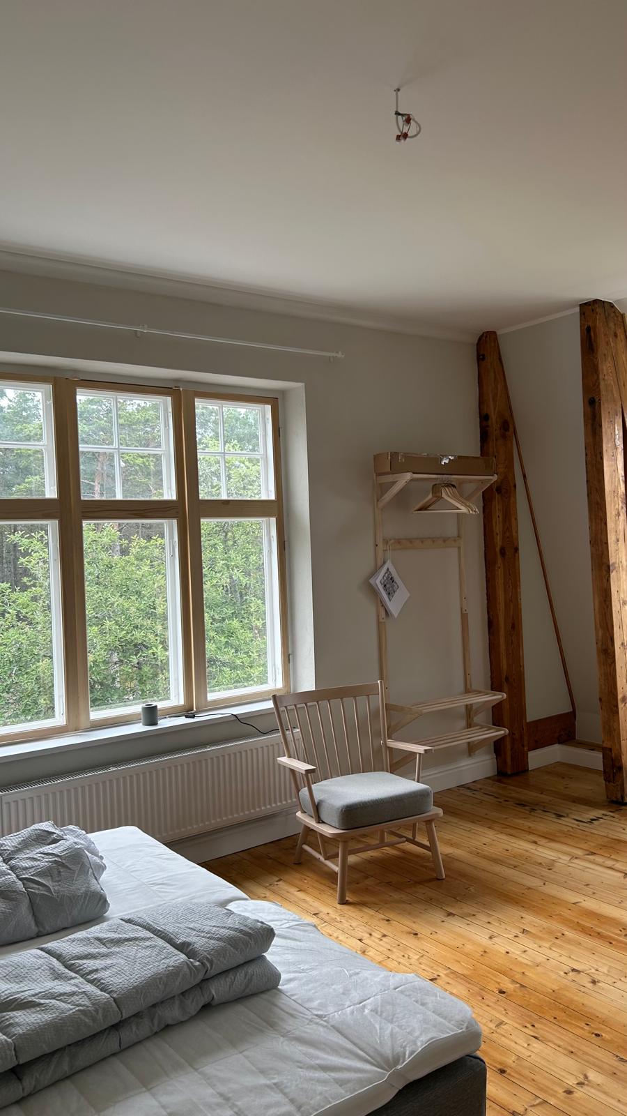 Skogslilja är ett litet mysigt rum på 14 kvm som vätter mot väst och har kvällssol. Det finns en egen toalett på rummet.
